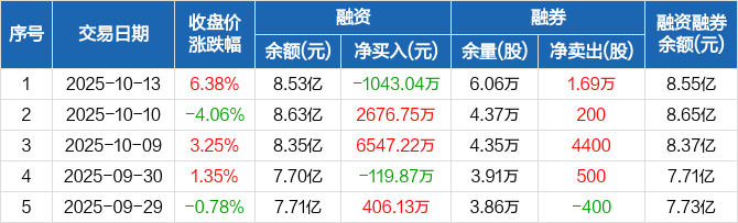新洁能:融资净偿还1043.04万元,融资余额8.53亿元(10-13)
