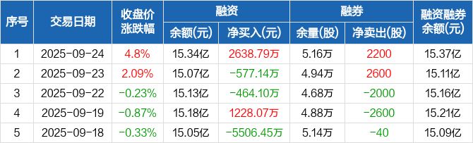 德业股份:融资净买入2638.79万元,融资余额15.34亿元(09-24)