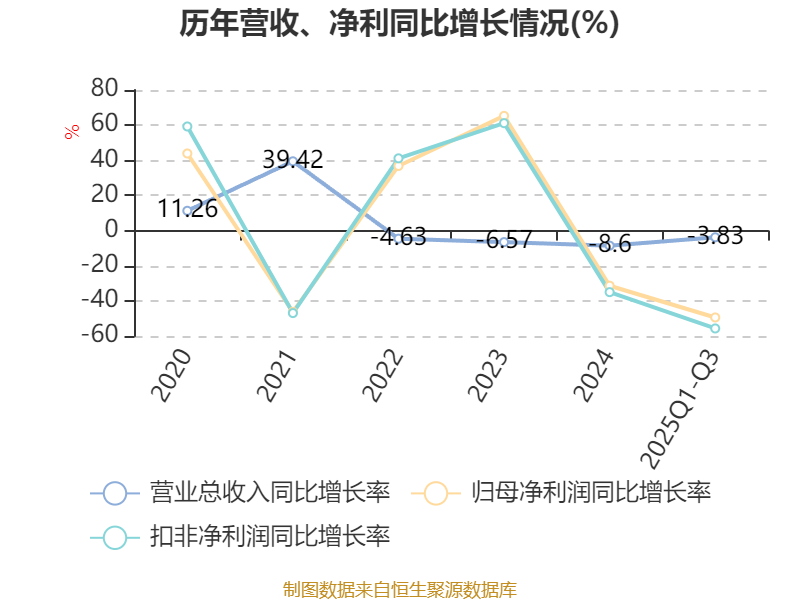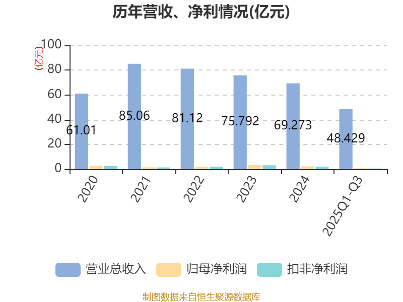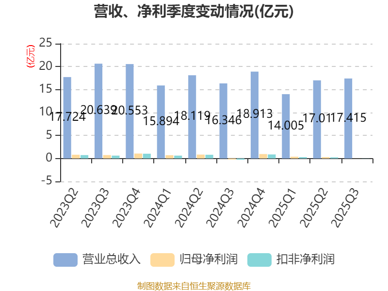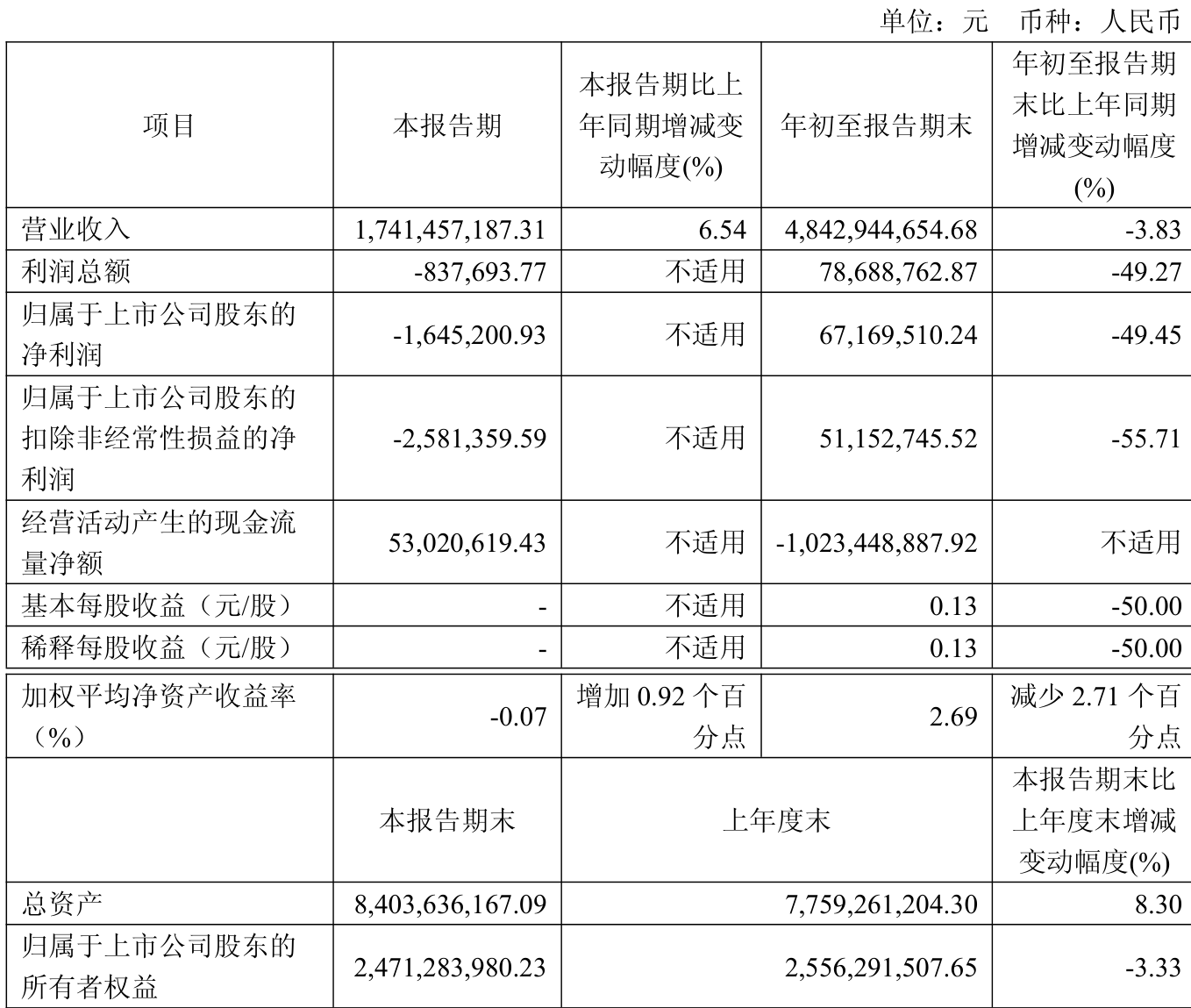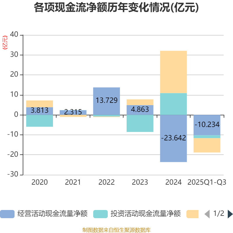 2025年前三季度,公司经营活动现金流净额为-10.23亿元,同比增加22.58亿元;筹资活动现金流净额-7.16亿元,同比减少32.47亿元;投资活动现金流净额-1.46亿元,上年同期为11.38亿元。