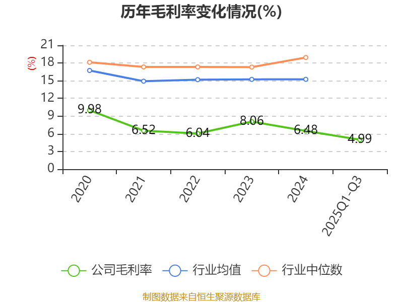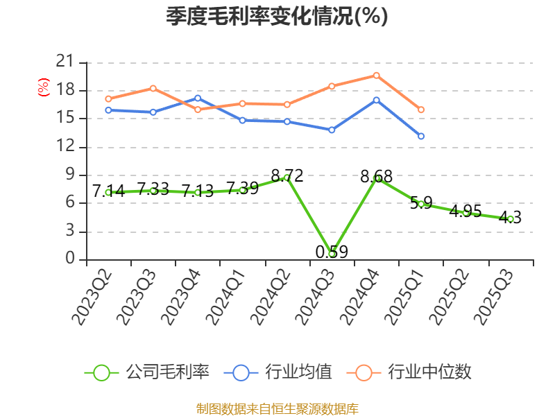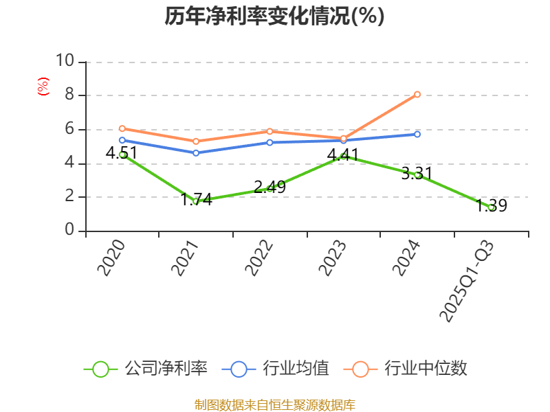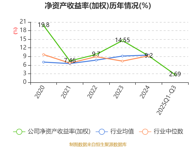盈利能力方面, 2025年前三季度公司加权平均净资产收益率为2.69%,同比下降2.71个百分点。公司2025年前三季度投入资本回报率为0.75%,较上年同期下降1.64个百分点。