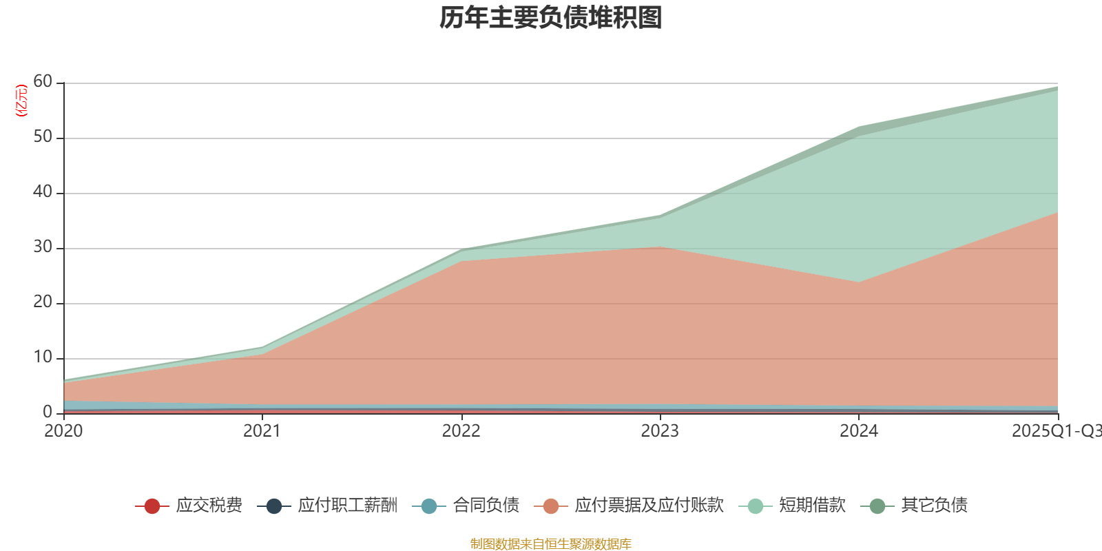 负债重大变化方面,截至2025年三季度末,公司应付票据及应付账款较上年末增加56.85%,占公司总资产比重上升12.95个百分点;短期借款较上年末减少16.6%,占公司总资产比重下降7.85个百分点;一年内到期的非流动负债较上年末减少100%,占公司总资产比重下降1.9个百分点;长期借款占公司总资产的0.55%,上年末为0。