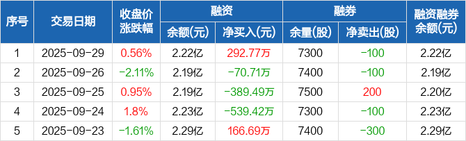 三人行:融资净买入292.77万元,融资余额2.22亿元(09-29)