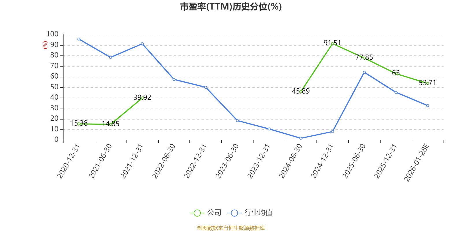 市盈率、市净率为负时,不显示当期分位数,会导致折线图中断。