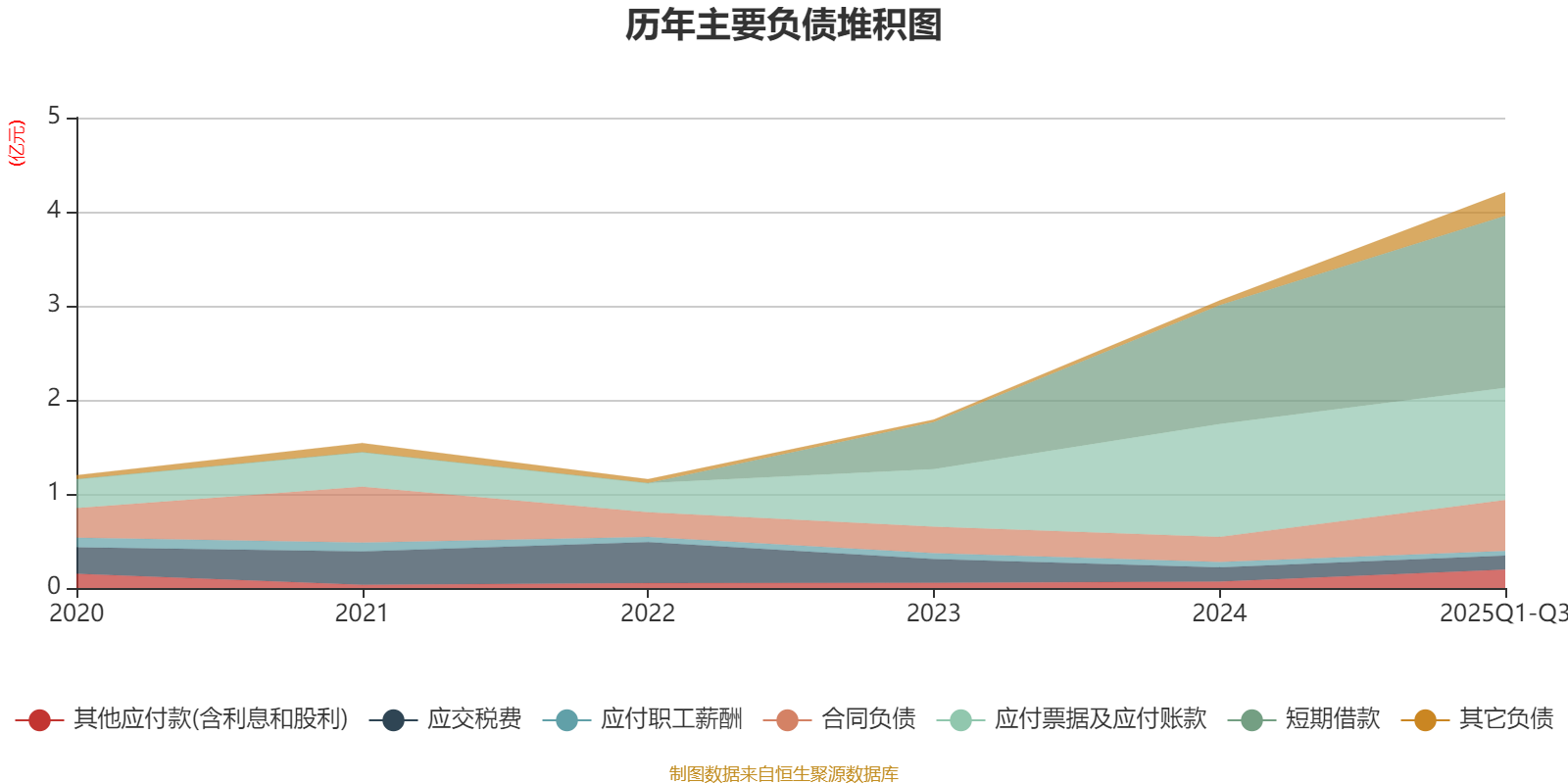 负债重大变化方面,截至2025年三季度末,公司短期借款较上年末增加44.94%,占公司总资产比重上升2.93个百分点;合同负债较上年末增加103.78%,占公司总资产比重上升1.61个百分点;其他流动负债较上年末增加3113.47%,占公司总资产比重上升1.27个百分点;其他应付款(含利息和股利)较上年末增加183.4%,占公司总资产比重上升0.76个百分点。