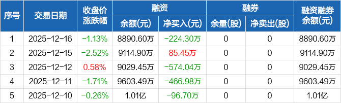新亚电子:融资净偿还224.3万元,融资余额8890.6万元(12-16)