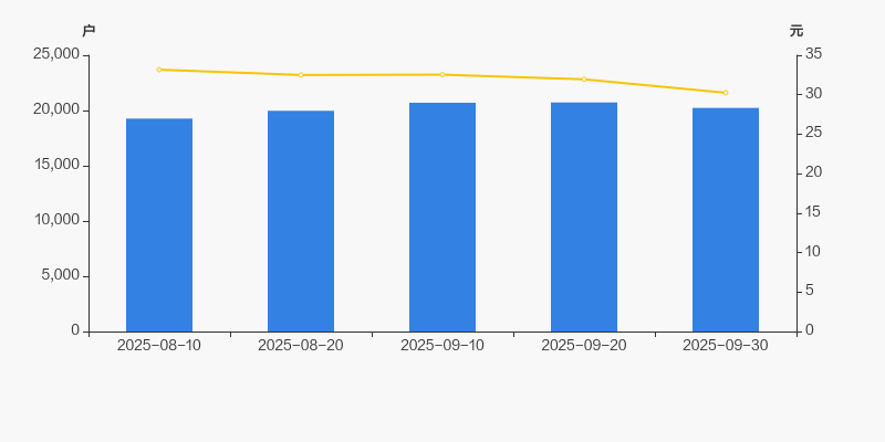 2025年8月10日至今,公司股东户数有所增长,区间涨幅为5.02%。2025年8月10日至2025年9月30日区间股价下降8.80%。