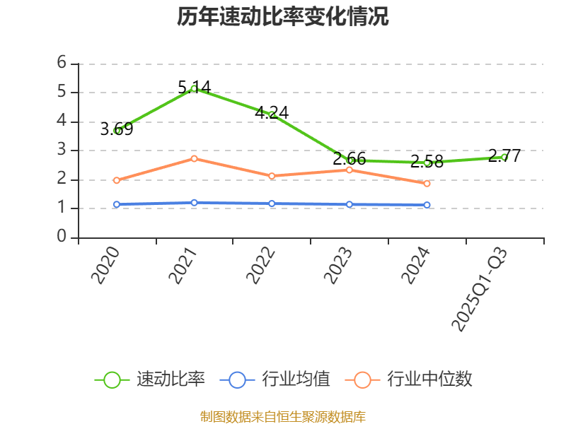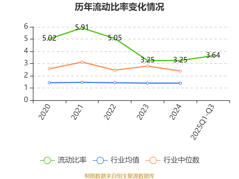 2025年前三季度,公司流动比率为3.64,速动比率为2.77。