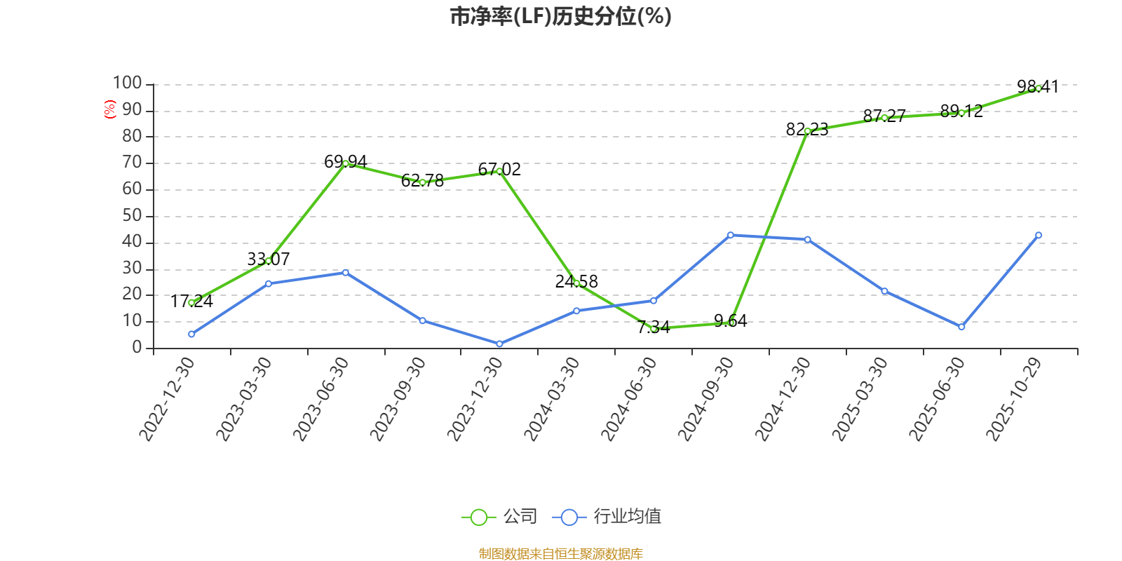 市盈率、市净率为负时,不显示当期分位数,会导致折线图中断。