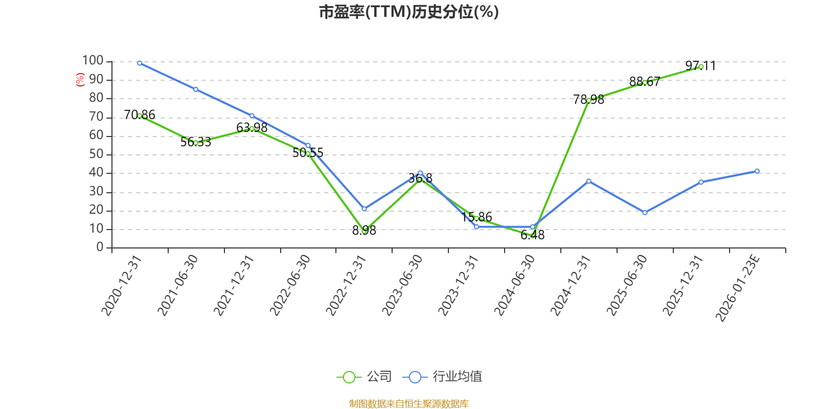 市盈率、市净率为负时,不显示当期分位数,会导致折线图中断。