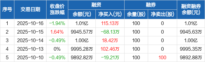 宏柏新材:融资净买入115.13万元,融资余额1.01亿元(10-16)