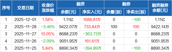 宏柏新材:融资净买入1688.81万元,融资余额1.11亿元(12-01)