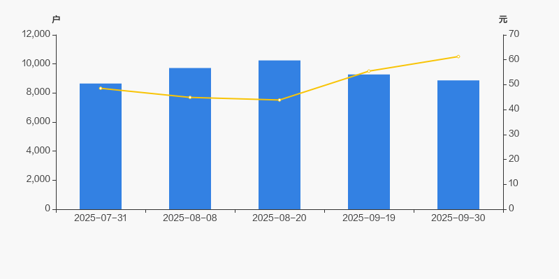2025年7月31日至今,公司股东户数有所增长,区间涨幅为2.50%。2025年7月31日至2025年9月30日区间股价上涨26.25%。