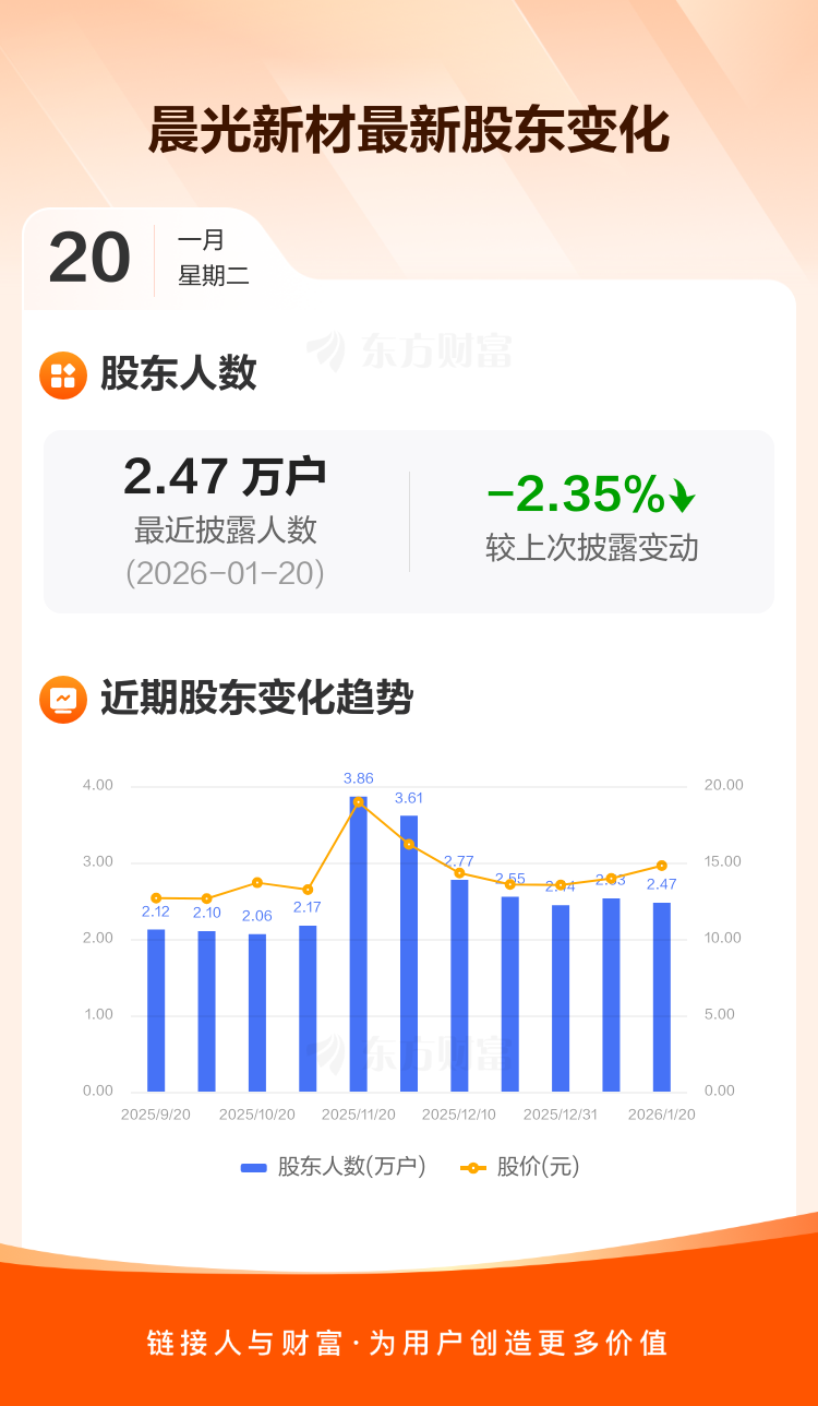 晨光新材:截至1月20日最新股东户数2.47万户,较上期减少2.35%