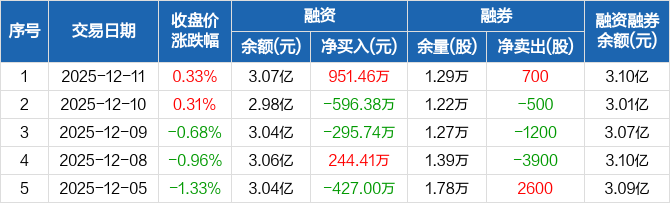 东鹏饮料:融资净买入951.46万元,融资余额3.07亿元(12-11)