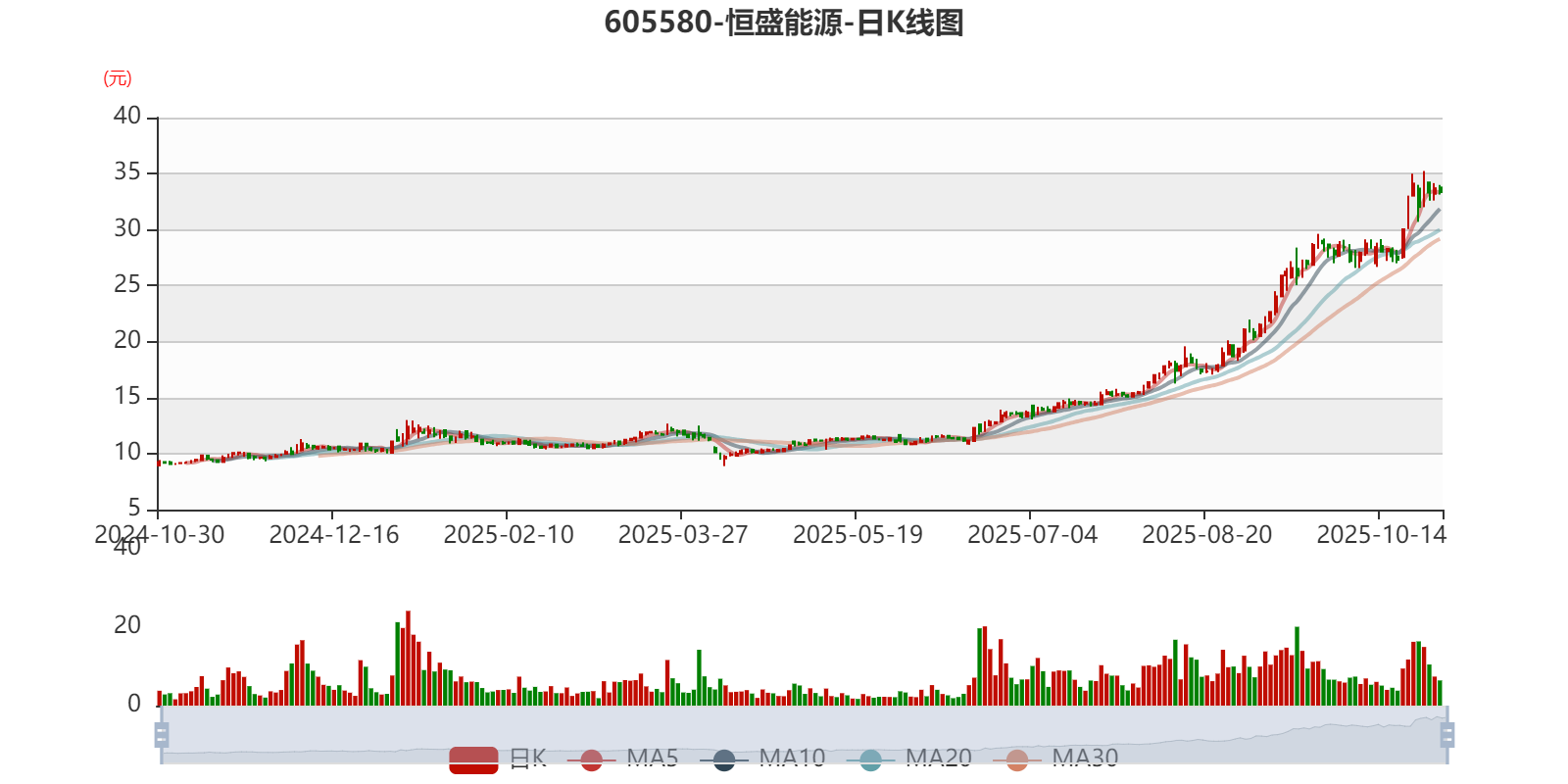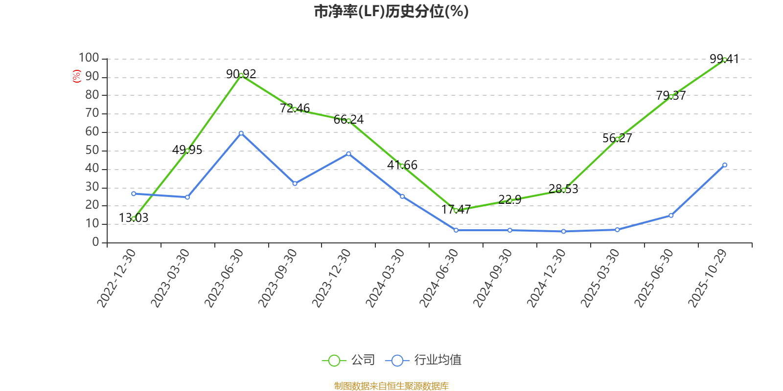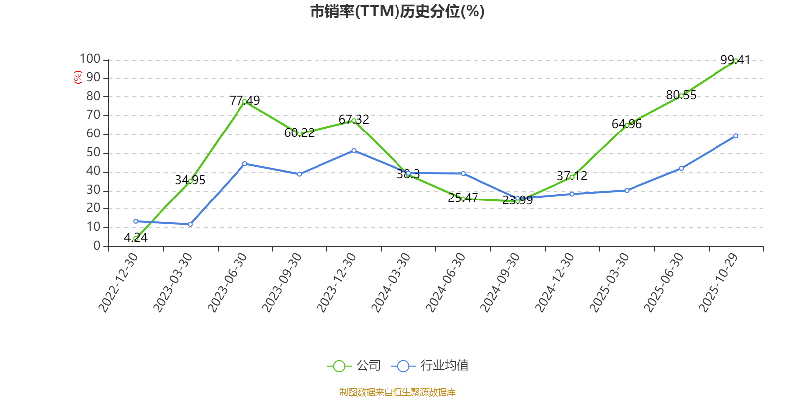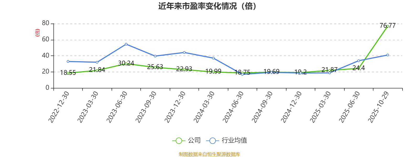 以10月29日收盘价计算,恒盛能源目前市盈率(TTM)约为76.77倍,市净率(LF)约9.68倍,市销率(TTM)约10.25倍。