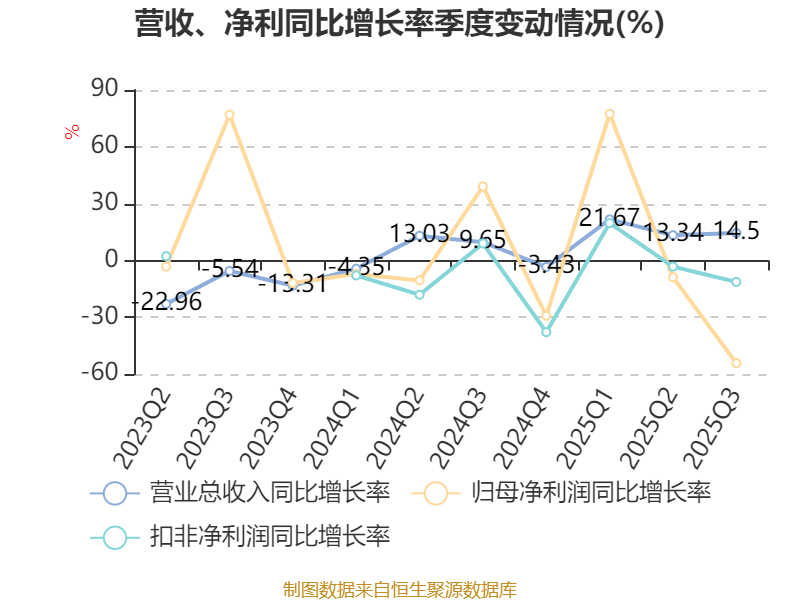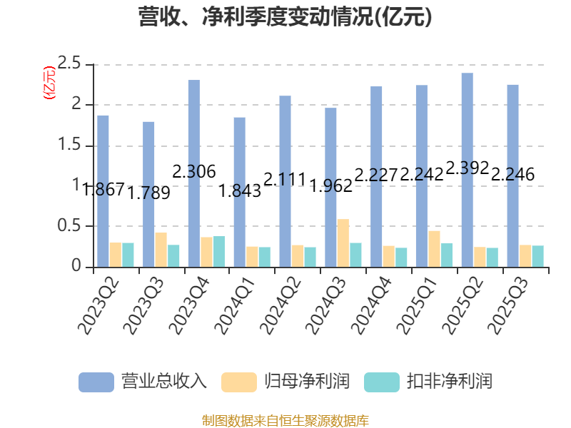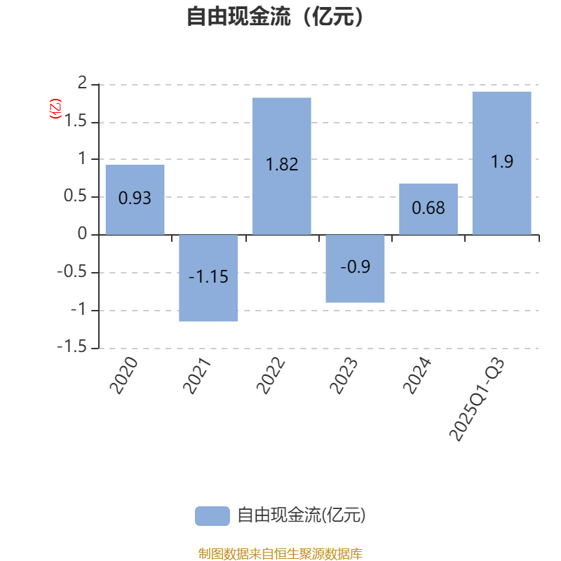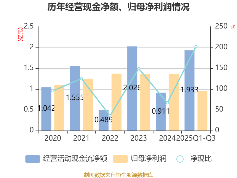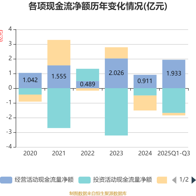 2025年前三季度,公司经营活动现金流净额为1.93亿元,同比增长171.2%;筹资活动现金流净额-1698.11万元,同比增加5301.33万元;投资活动现金流净额-1.68亿元,上年同期为-5002.17万元。
