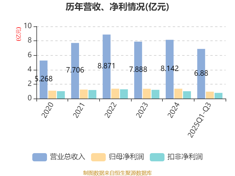 中证智能财讯恒盛能源(605580)10月30日披露2025年第三季度报告。前三季度公司实现营业总收入6.88亿元,同比增长16.32%;归母净利润9571.63万元,同比下降13.51%;扣非净利润7868.54万元,同比增长0.85%;经营活动产生的现金流量净额为1.93亿元,同比增长171.20%;报告期内,恒盛能源基本每股收益为0.34元,加权平均净资产收益率为7.94%。
