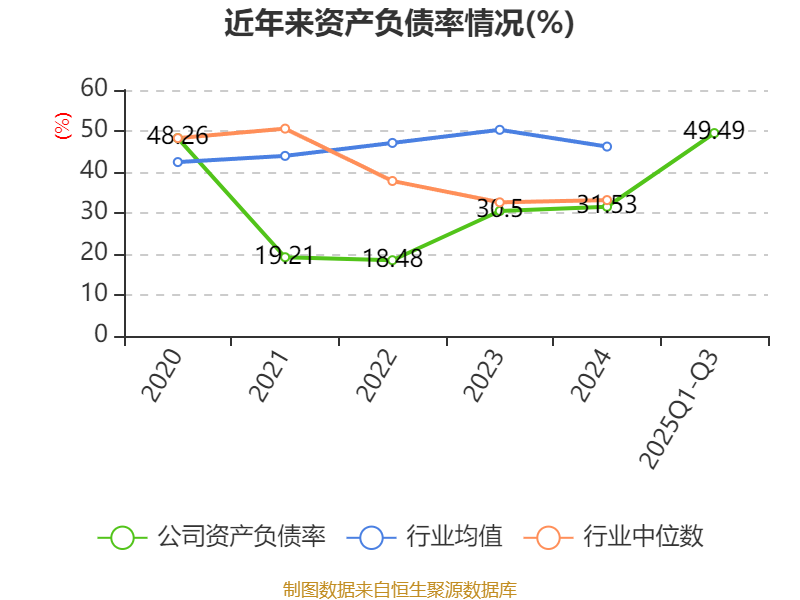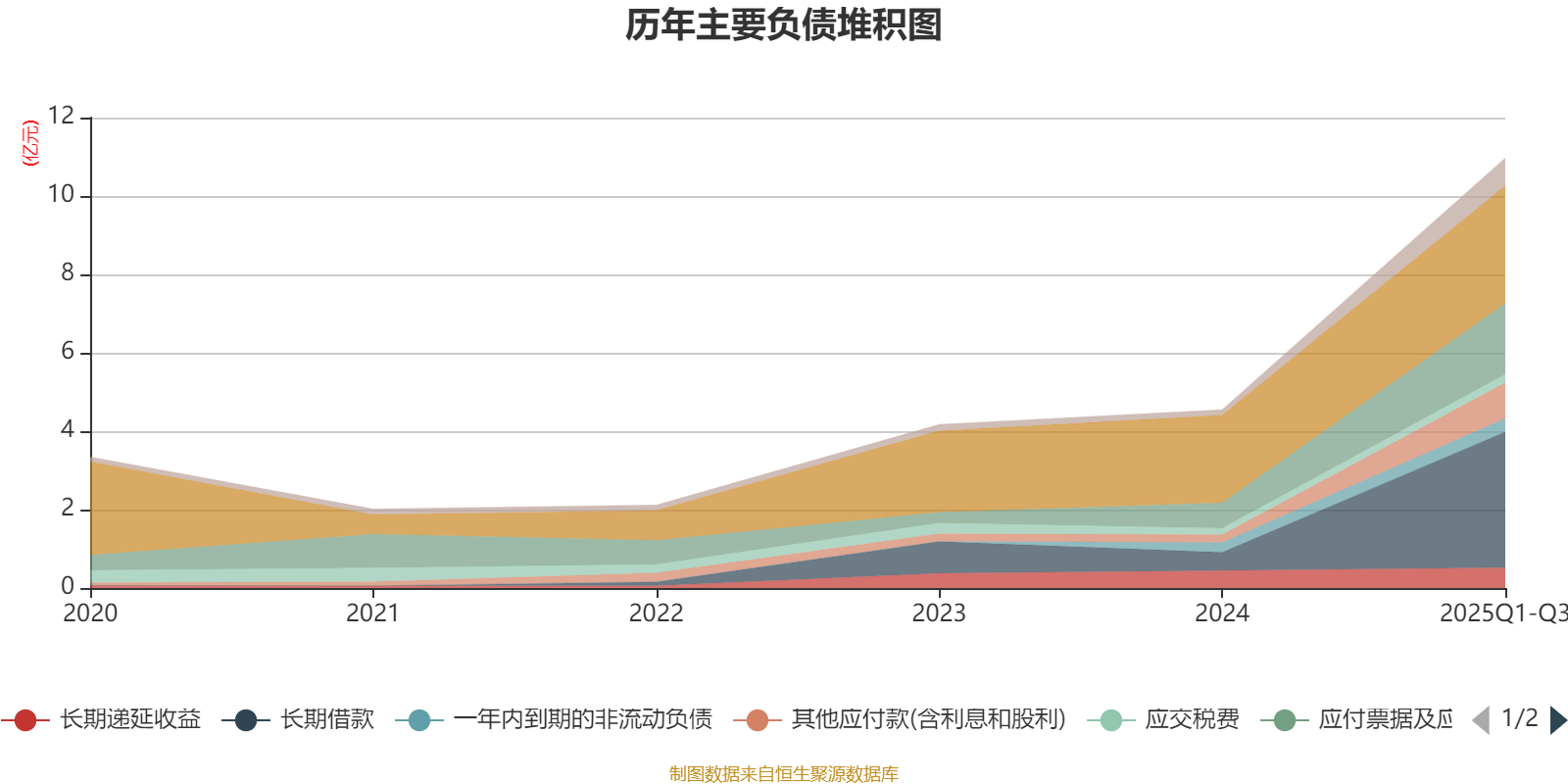 负债重大变化方面,截至2025年三季度末,公司长期借款较上年末增加639.12%,占公司总资产比重上升12.38个百分点;应付票据及应付账款较上年末增加178.91%,占公司总资产比重上升3.69个百分点;其他应付款(含利息和股利)较上年末增加352.77%,占公司总资产比重上升2.72个百分点;短期借款较上年末增加33.88%,占公司总资产比重下降1.98个百分点。