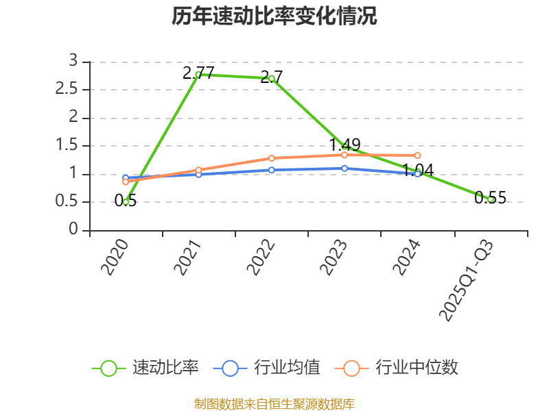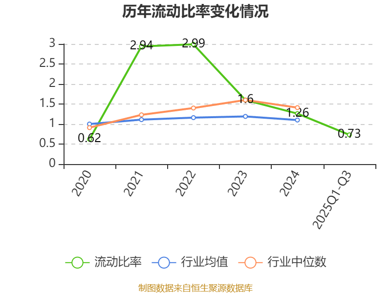 2025年前三季度,公司流动比率为0.73,速动比率为0.55。