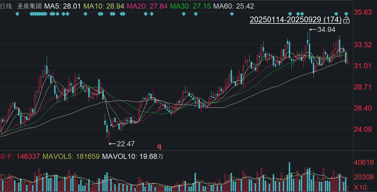 二级市场上,截至29日午间收盘,圣泉集团上涨1.31%报31.66元/股,总市值为267.97亿元,今年来公司股价累计上涨约37%。