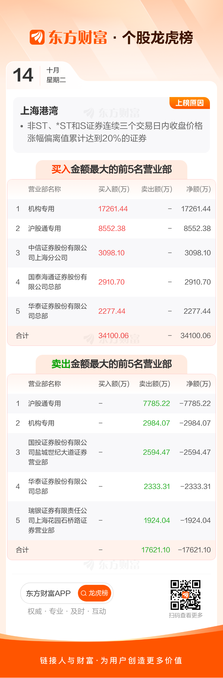交易所2025年10月14日公布的交易公开信息显示,上海港湾因成为非ST、*ST和S证券连续三个交易日内收盘价格涨幅偏离值累计达到20%的证券上榜。上海港湾当日收报31.23元,涨跌幅6.51%,换手率9.38%,成交额7.07亿。异常期间10月10日至10月14日,期间涨幅25.32%,累计偏离值27.07%,区间成交额14.03亿。