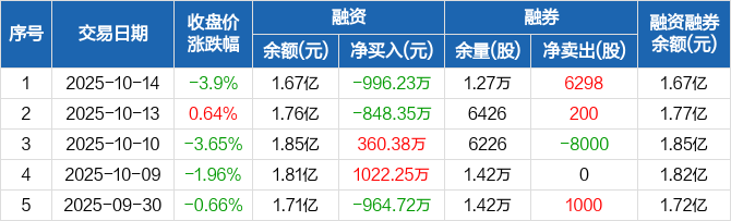 华兴源创:融资净偿还996.23万元,融资余额1.67亿元(10-14)