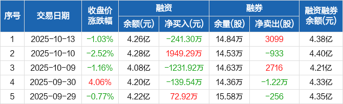 睿创微纳:融资净偿还241.3万元,融资余额4.26亿元(10-13)