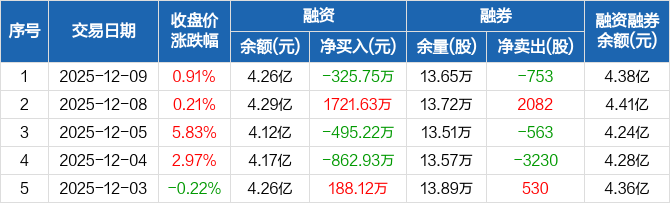 睿创微纳:融资净偿还325.75万元,融资余额4.26亿元(12-09)