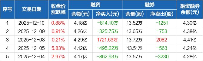 睿创微纳:融资净偿还814.1万元,融资余额4.18亿元(12-10)
