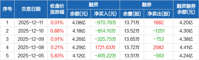 睿创微纳:连续3日融资净偿还累计2110.63万元(12-11)