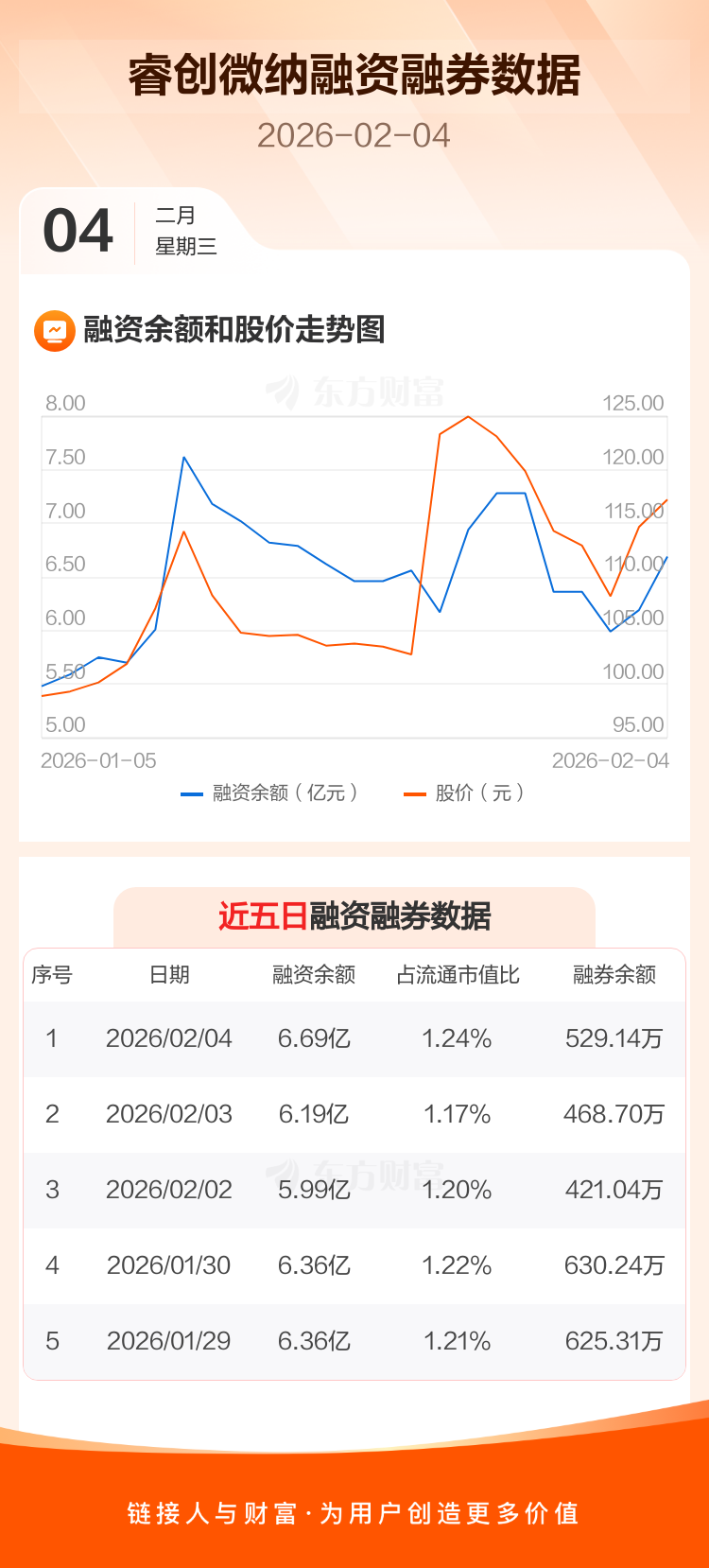 交易所最新数据显示,睿创微纳于2026年2月4日获融资买入1.45亿元,融资偿还9498.26万元,当日融资净买入4997.14万元。目前,该股融资余额6.69亿,占流通市值比例为1.24%。