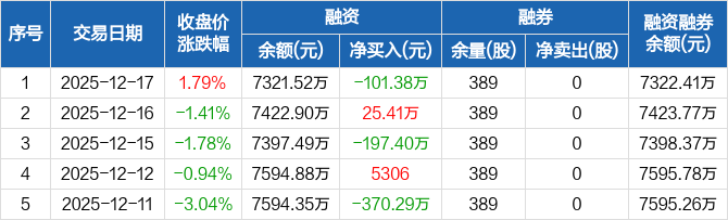 博汇科技:融资净偿还101.38万元,融资余额7321.52万元(12-17)
