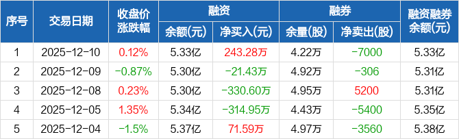 光峰科技:融资净买入243.28万元,融资余额5.33亿元(12-10)