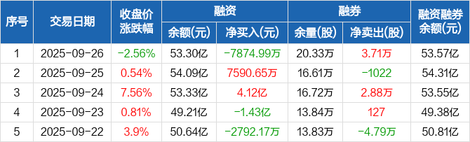 澜起科技:融资净偿还7874.99万元,融资余额53.3亿元(09-26)