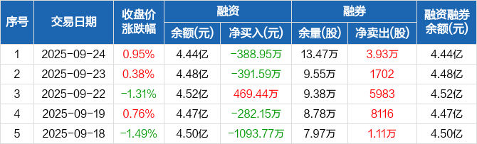中国通号:融资净偿还388.95万元,融资余额4.44亿元(09-24)