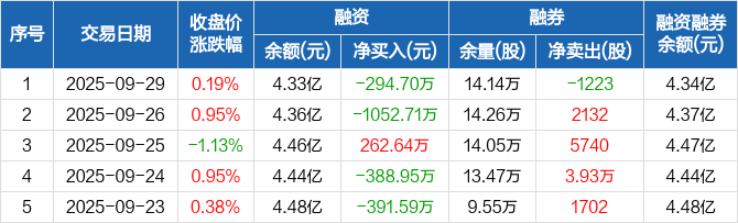 中国通号:融资净偿还294.7万元,融资余额4.33亿元(09-29)