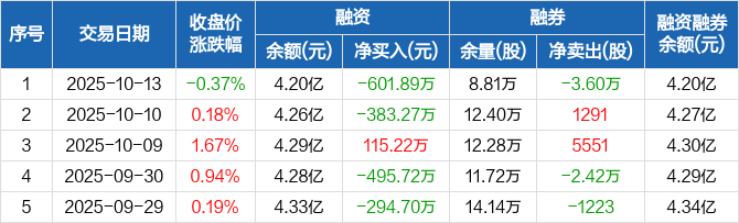 中国通号:融资净偿还601.89万元,融资余额4.2亿元(10-13)