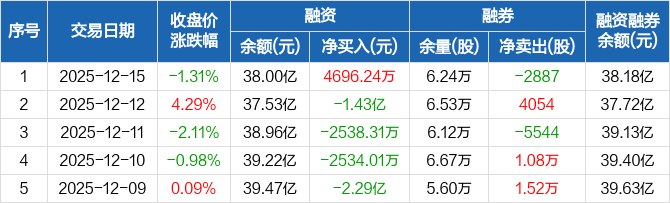 中微公司:融资净买入4696.24万元,融资余额38亿元(12-15)