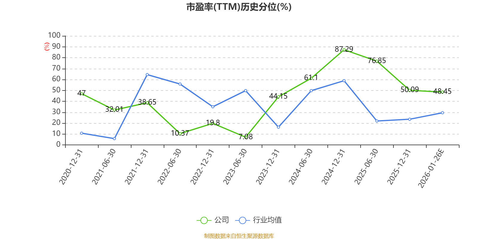以本次披露业绩预告均值计算,公司近年市盈率(TTM)图如下所示: