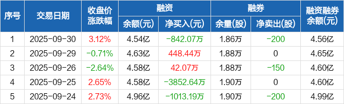 心脉医疗:融资余额4.54亿元,创近一年新低(09-30)