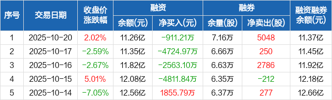绿的谐波:连续4日融资净偿还累计1.3亿元(10-20)