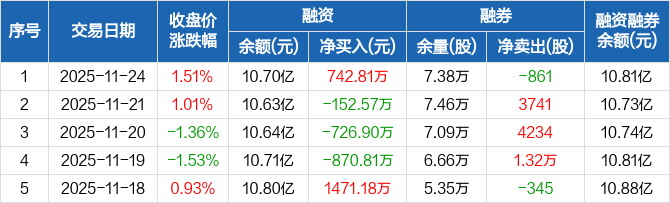 绿的谐波:融资净买入742.81万元,融资余额10.7亿元(11-24)