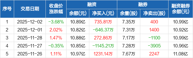 绿的谐波:融资净买入735.81万元,融资余额10.89亿元(12-02)