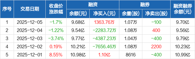 乐鑫科技:融资净买入1363.76万元,融资余额9.68亿元(12-05)