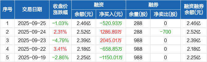 方邦股份:融资净偿还520.93万元,融资余额2.46亿元(09-25)