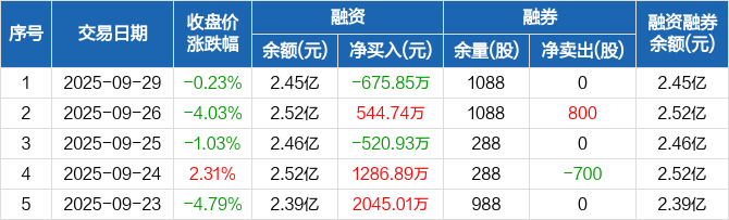 方邦股份:融资净偿还675.85万元,融资余额2.45亿元(09-29)