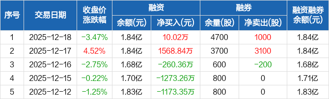 方邦股份:融资净买入10.02万元,融资余额1.84亿元(12-18)