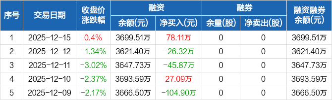 奥福科技:融资净买入78.11万元,融资余额3699.51万元(12-15)
