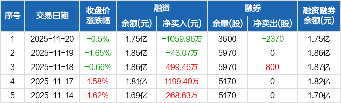 杰普特:融资净偿还1059.96万元,融资余额1.75亿元(11-20)