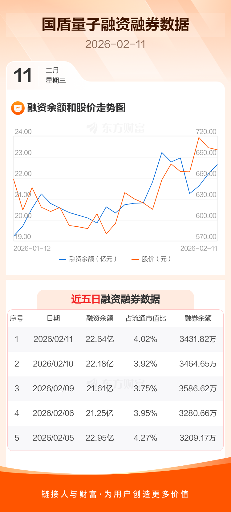 交易所最新数据显示,国盾量子于2026年2月11日获融资买入1.98亿元,融资偿还1.53亿元,当日融资净买入4575.09万元。目前,该股融资余额22.64亿,占流通市值比例为4.02%。